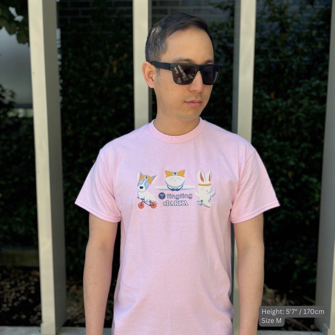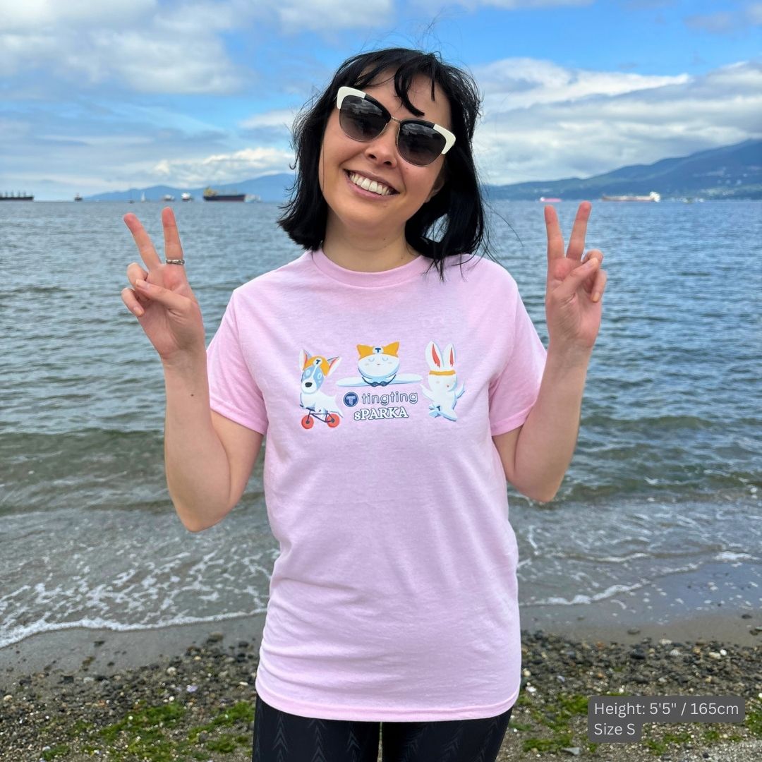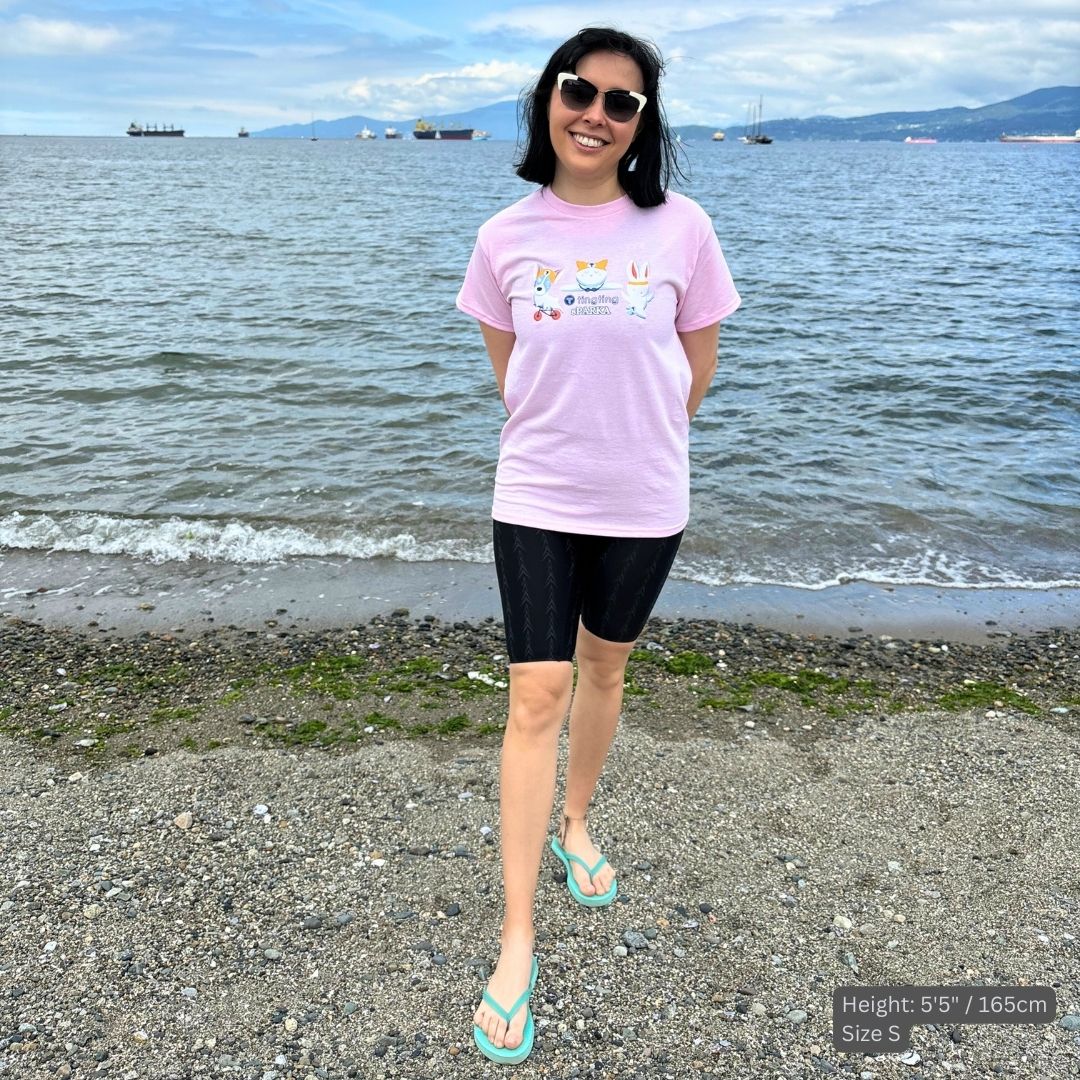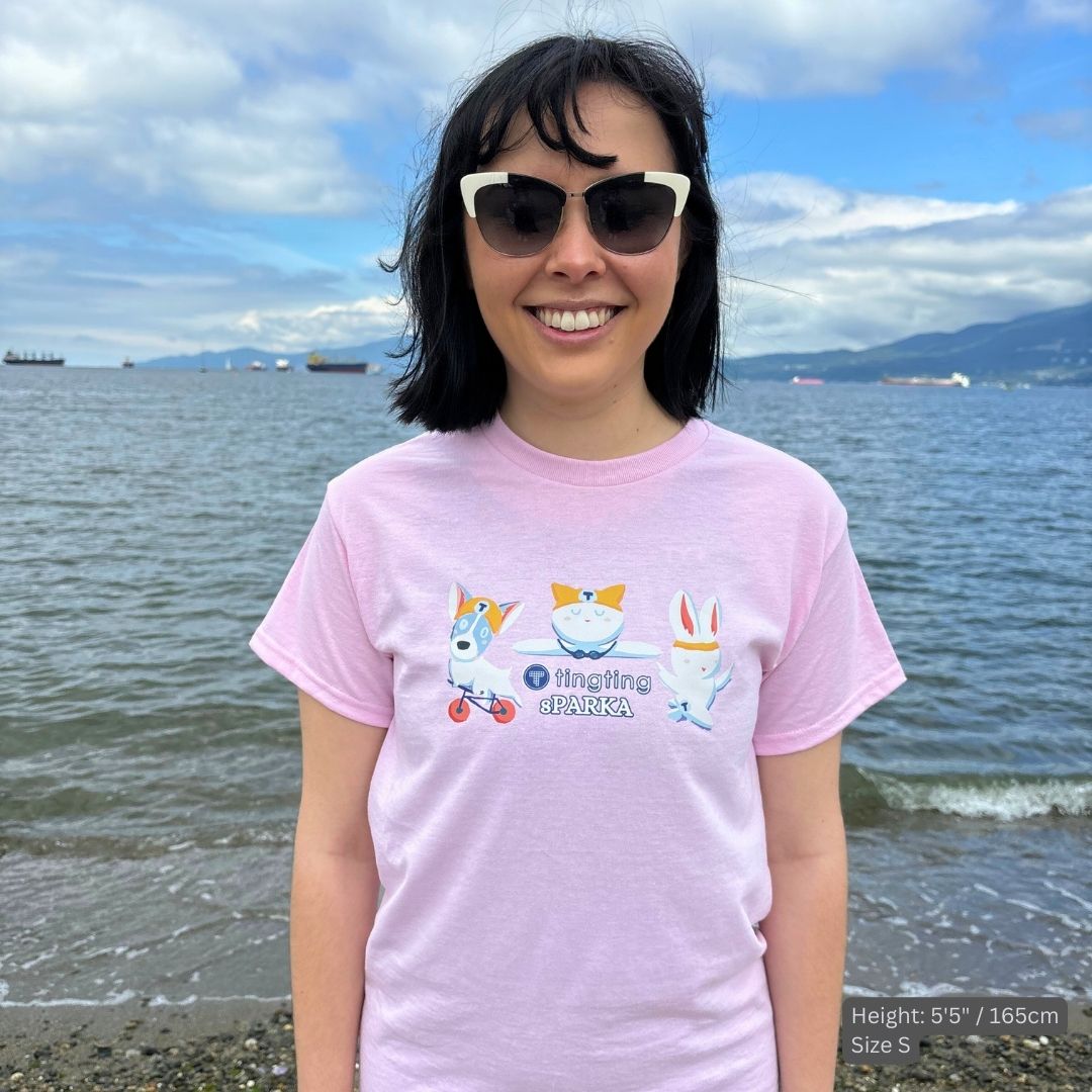 This crewneck t-shirt crafted of a 50/50 cotton/polyester features Tingting's animal athletes on chest. Undeniably, they're our favorite training buddies!